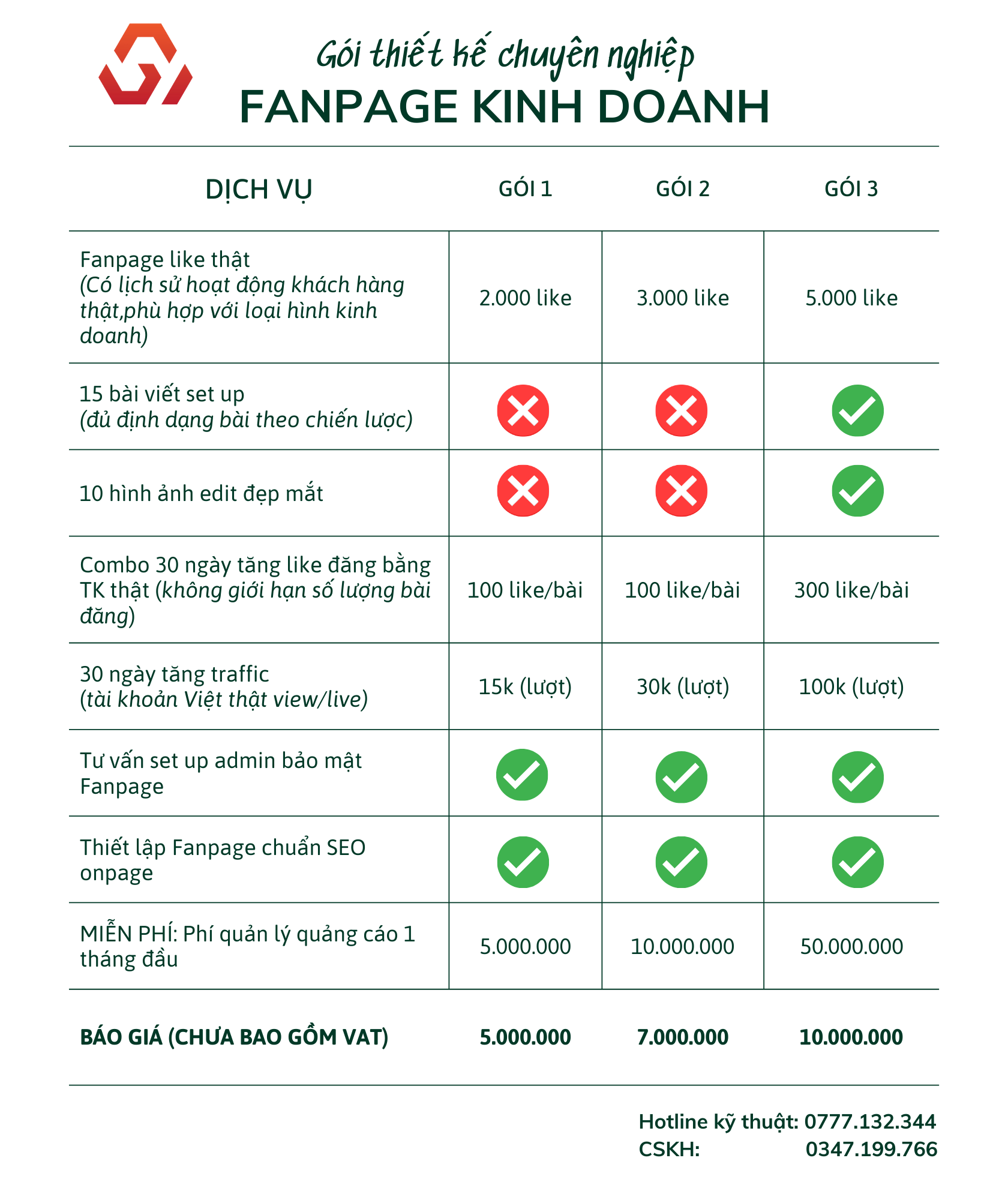 BẢNG GIÁ DỊCH VỤ SETUP FANPAGE